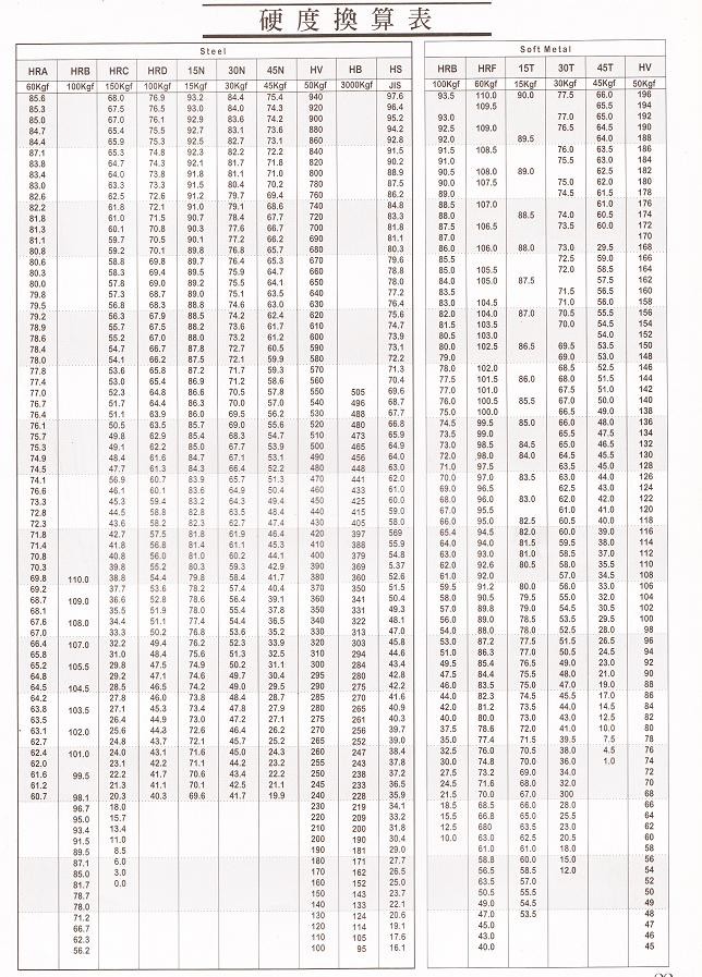 硬度換算表